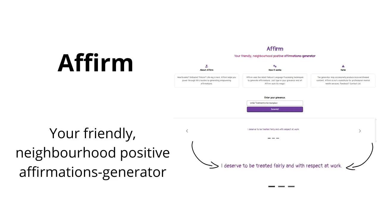 Heartbreaks? Setbacks? Failure? Life-ing is hard. Affirm helps you power through life's hurdles by generating empowering affirmations.
