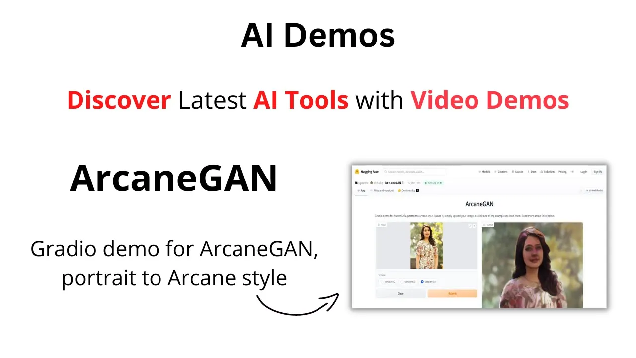 Unleash the power of AI-generated art with ArcaneGAN portrait to Arcane style. it allows you to easily transform your portraits into stunning and unique arcane-style images. With just a few simple steps, you can upload your image, select the version, and click submit to see the amazing results.
